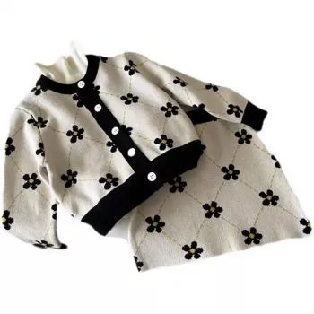 Charming Floral Knit Cardigan and Skirt Set for Girls – Perfect Autumn Outfit