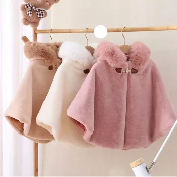 Cozy Winter Cloak for Girls: Thickened Hooded Shawl Coat, 1-6 Years