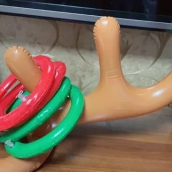 Our entire family got into the act of wearing and tossing the rings. Our grandson was in stitches watching all of us have so much fun. It's easy to use and made for a fun time during our family Christmas celebration, all without breaking the bank.